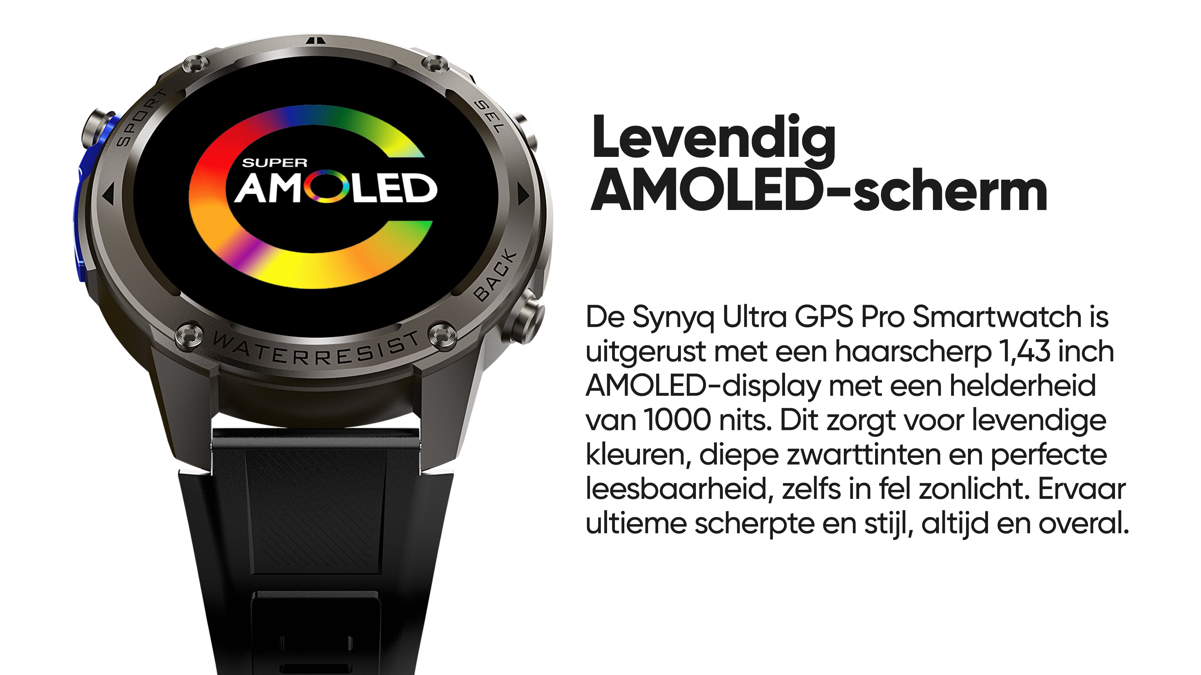 Synyq GPS Pro Smartwatch Men - 1.43 inch AMOLED Display - GPS Sports Watch
