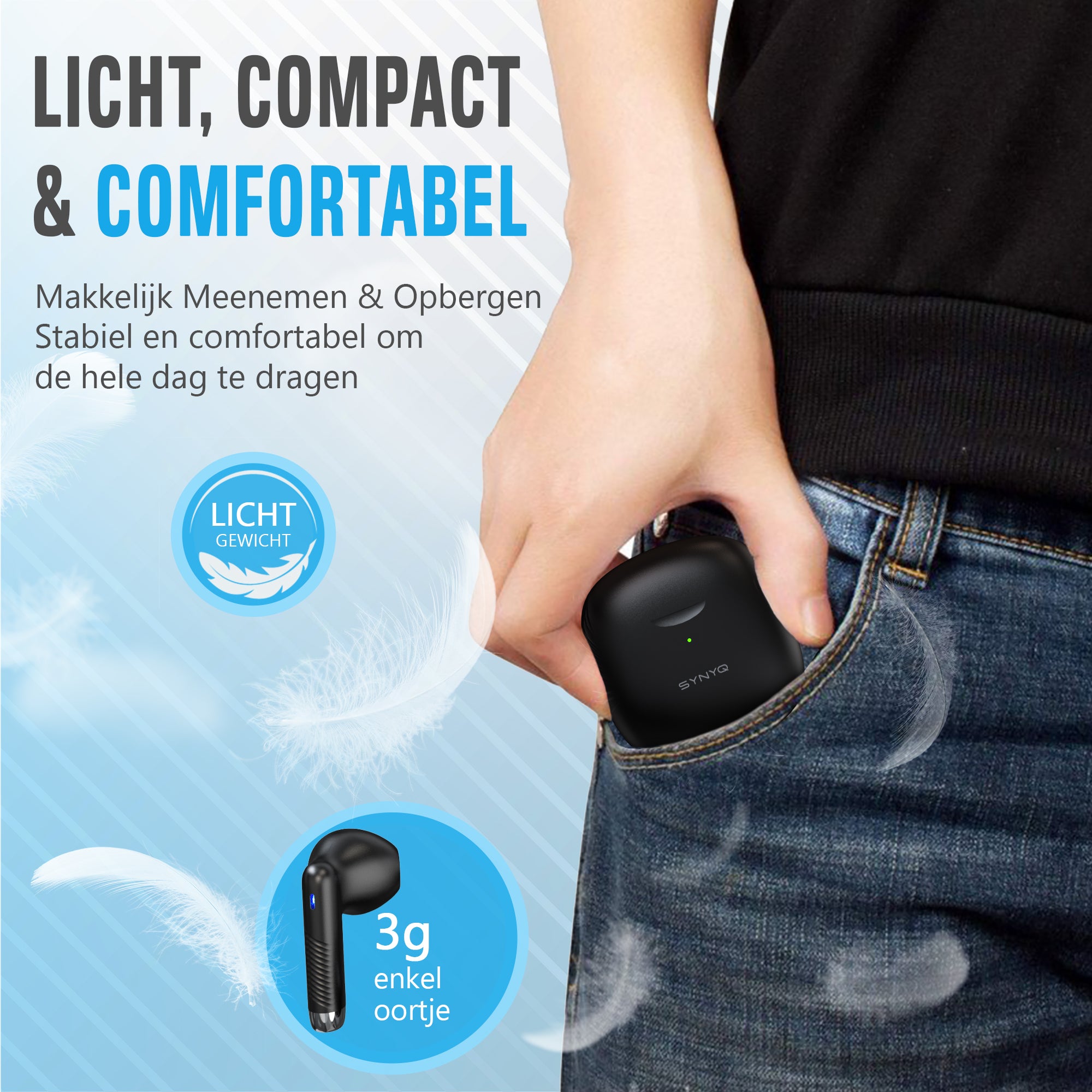 De Synyq Prox oortjes zijn licht, compact en bieden ultiem comfort. Ze blijven stevig zitten, zelfs tijdens lange draagperiodes, en leveren uitstekende geluidskwaliteit voor elke gelegenheid.